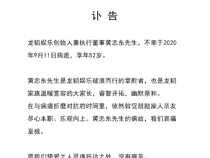 The statement read, “While battling against his illness, [Zhongdong] encouraged his family and friends to focus on their work and to be optimistic. We are devastated by his passing.” They added that a simple wake and funeral will be held according to the late businessman’s wishes.