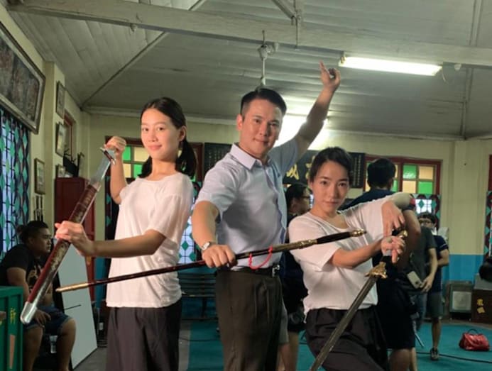 Up in arms: Koe Yeet with Tasha Low and Nick Shen. This was one of the first few scenes where we got to touch real swords, Koe Yeet says. So we took a lot of pictures with them.