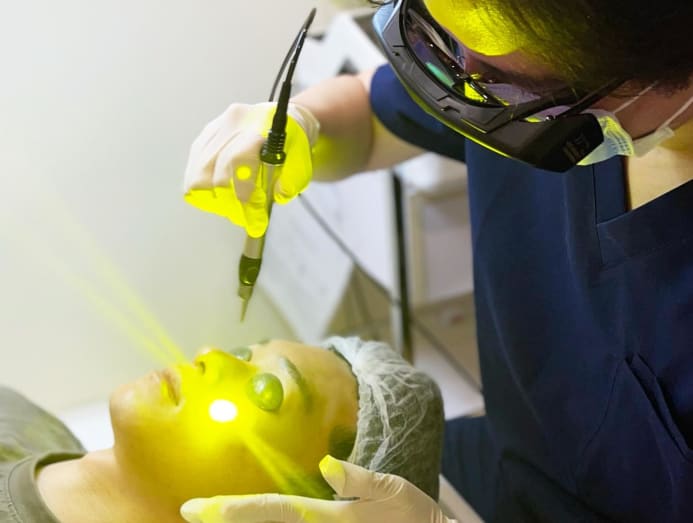 One of the clinic’s more versatile solutions is the DRx XT Pro Laser, which uses four laser and toning treatments to rejuvenate the appearance of ageing, damaged and acne-prone skin. There’s minimal to no downtime for this treatment, said Ms Chua.
