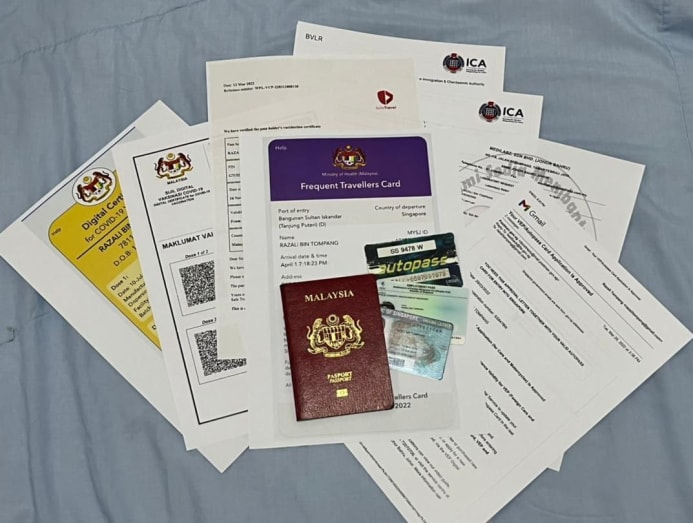 In preparation for his trip, Razali drew up a checklist to ensure that he had all the required documents for his journey - passport, vaccination certificate, Land Transport Authority (LTA) Autopass card, a confirmation email on his Vehicle Entry Permit scheme and his motorcycle license.