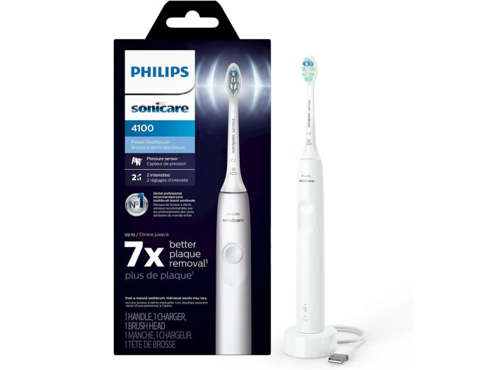 Upgrade your oral care routine with the rechargeable Philips Sonicare 4100 Power Toothbrush. It’s designed for a deep, effective clean while protecting sensitive gums. Sonicare technology helps remove plaque and a 2-minute SmarTimer and QuadPacer ensures dentist-recommended brushing time.
