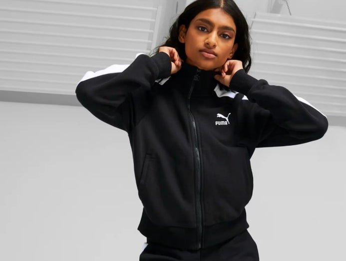 This jacket pays homage to PUMA’s OG T7 track-inspired collection. This updated edition is made from at least 20 per cent recycled material and features classic sleeve striping and a sleek fit.
