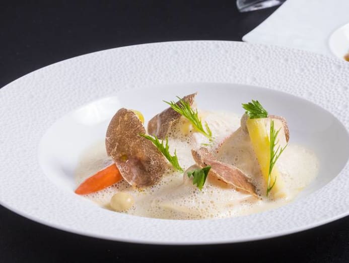 “If I have cep mushrooms, I want you to feel the cep. Now, you can get mushrooms; you can get Alba truffles. And I have green asparagus coming in,” he said. For the a la carte menu, which will be rolled out on Nov 12, Massot shared that he will do lamb. "Because the season for lamb from the Pyrenees is starting soon,” he said. He continued: “Some chefs can create things on paper. I cannot do that. I order a product, I look at the quality, I start to cook a little bit, and after, I start to imagine how I will use it for the dish.”