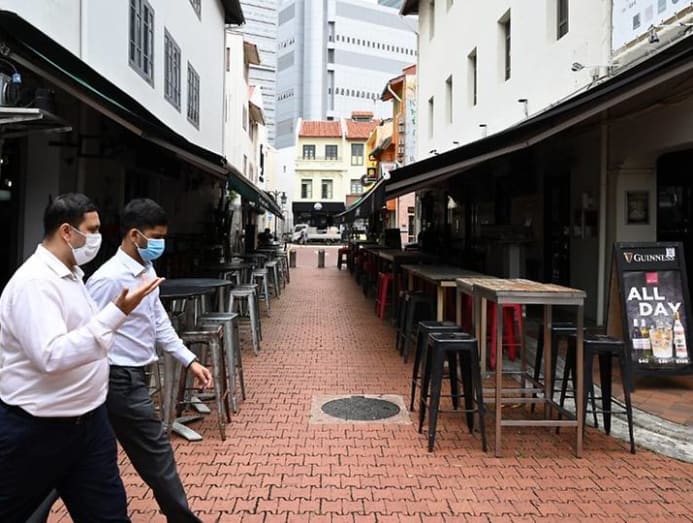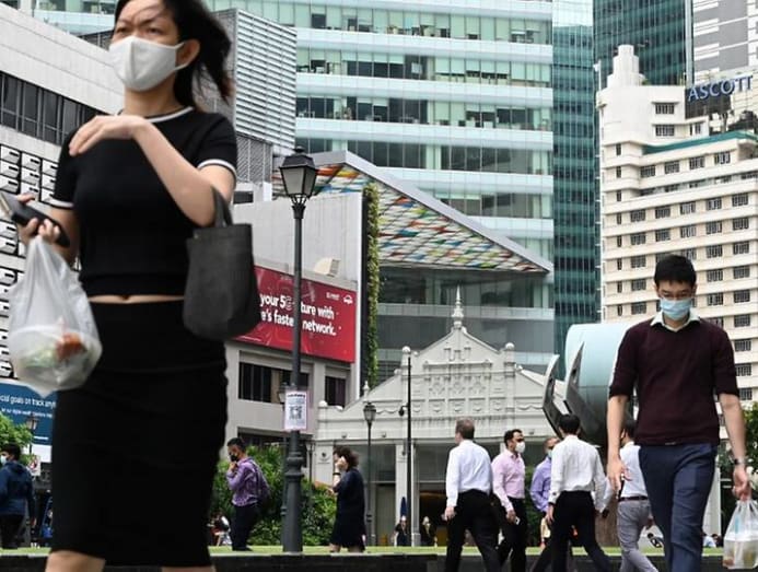 People walk during their lunch break in the financial business district of Raffles Place in Singapore on Jan 11, 2021. (Photo: AFP/Roslan RAHMAN)
