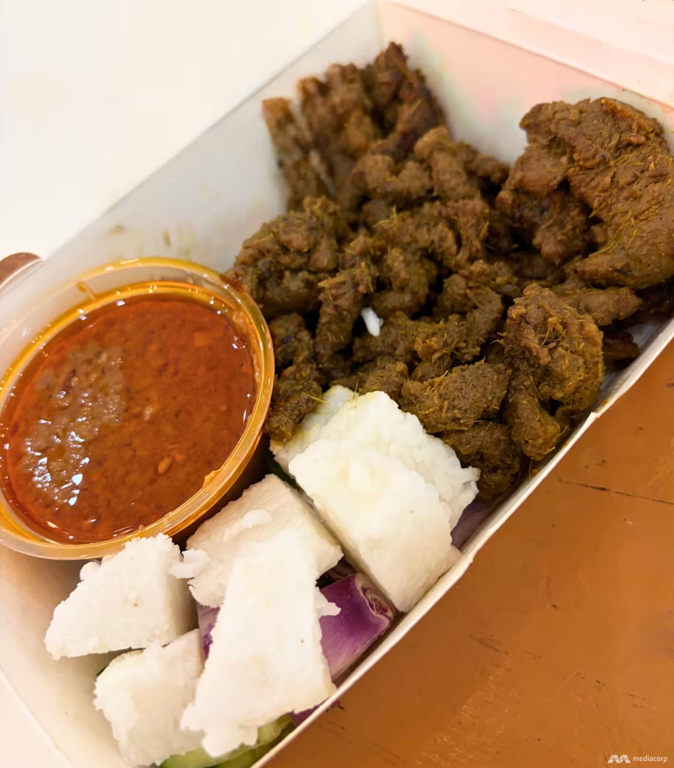 Instead of serving the meat on skewers, the satay is sold sans sticks in a takeaway box, making it somewhat easier to eat on the go. There’s a decent amount of beef chunks (roughly six to eight sticks worth) alongside ketupat, sliced onions and cucumbers, plus a generous portion of peanut sauce.