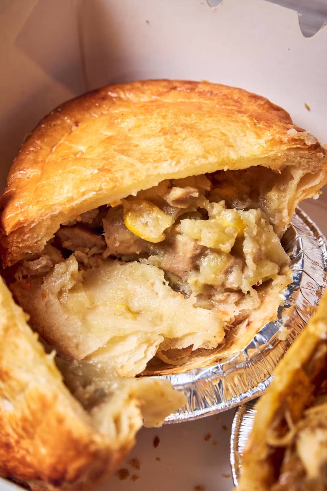 This hearty option offers larger pieces of peppery chook complemented with sweet corn kernels that add a pleasant crunch and sweetness to the buttery pastry.