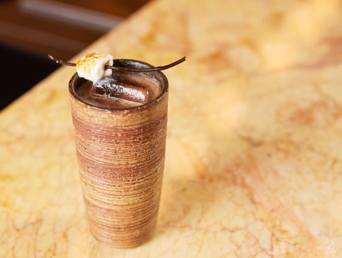 The bar also turns kitchen scraps like fruit peel, leftover bread and leftover coffee into flavour elements. For example, a Reverse New York Sour makes use of all parts of a mango, including the seed and skin, which are ultrasonic-aged; Chee calls this their “infinity mango”.