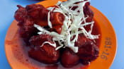 Like it or leave it, fresh cockles were also a must for this see hum lover – Ms Eng was generous with her portion – I counted at least a dozen topping my bowl. After a quick dunk in the hot broth to semi-cook them, the fat little bivalves burst with briny juices that mingled deliciously with the coconutty laksa gravy. Much of said gravy was also absorbed and dispensed in a delightfully explosive way by the taupok.