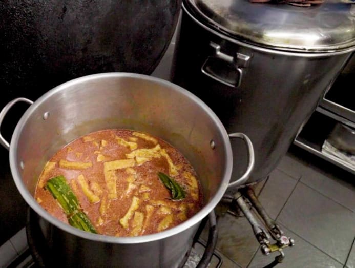 What I managed to find out was that Eng prepares a big batch of laksa paste once a week, blending red chillies, dried shrimp (hae bee), lemongrass, shallots, old ginger, turmeric and other undisclosed herbs and spices. To make the gravy, water, pandan leaf and coconut milk were added and put to boil each morning.