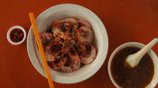 Each bowl of mee hoon kueh is made to order, little pieces of dough pinched off and quickly dropped into a boiling pot of hot soup to cook in a flash. “Once you’re experienced, it's quite fast – maybe just 10 seconds,” Lim said.