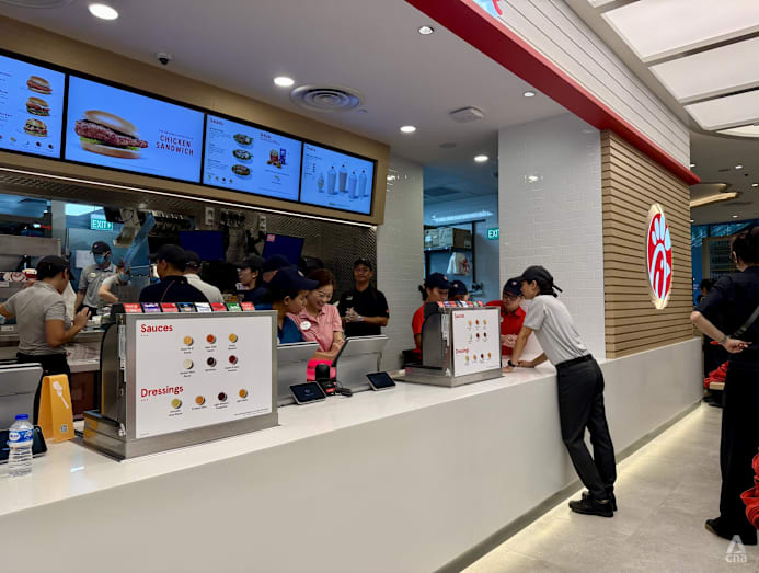 Chick-fil-A's first Singapore restaurant has a feature wall of Singapore elements. (Photo: CNA/May Seah)