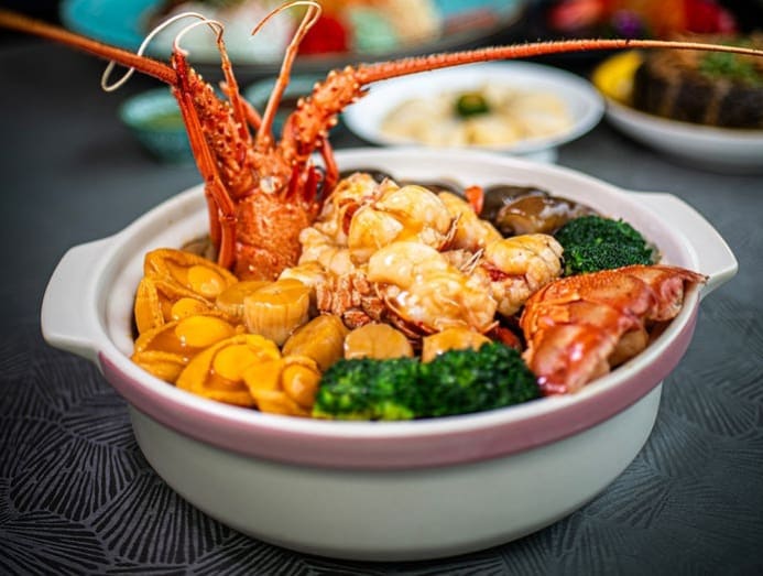 Made by the executive chef of Ben Yeo’s seafood restaurant Tan Xiang Yuan, the Tan Xiang Yuan signature lobster pen cai consists of Australian lobster, braised abalone, Japanese scallops and a whole lot more.