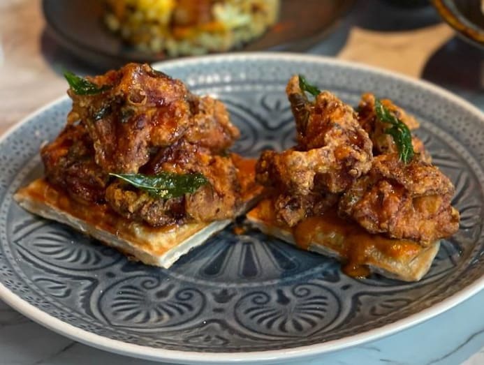 Gems to look out for include the cheeky This Is Not Aloo Gobi (S$16) – cauliflower couscous, masala compote, crispy potato and the quirky-named Prata Waffle ??? (S$24) – the chef's version of the American fried chicken and waffles boasting a Madras-style fried chicken with a butter chicken sauce.