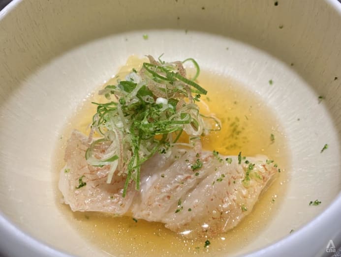 Then came a shabu shabu course of kinki fish from Hokkaido, poached in a broth of its own bones and scented with yuzu.