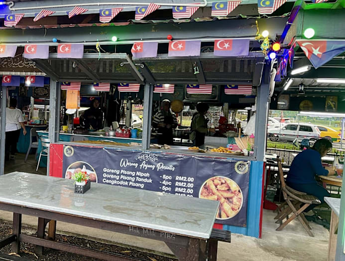 The quaint, hand-built cafe is still impeccably maintained, with an open concept kitchen and ample sheltered seating surrounded by twinkling fairy lights. Sarikan’s wife, Yati, now carries on his legacy, serving up pisang goreng, nasi lemak, mee siam, mee rebus and other comforting, home-style classics.