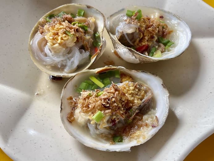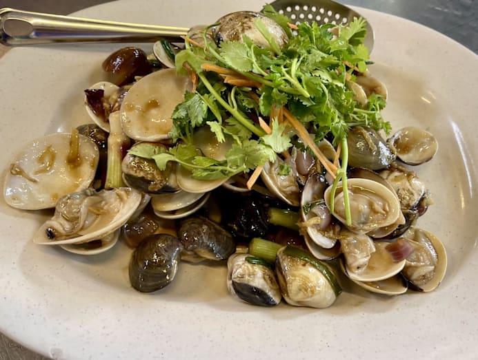 For a final surprise, we were served giant clams wider than my palm. The meaty bivalves were topped with crispy minced garlic, spring onion and springy vermicelli plump with the briny juices.