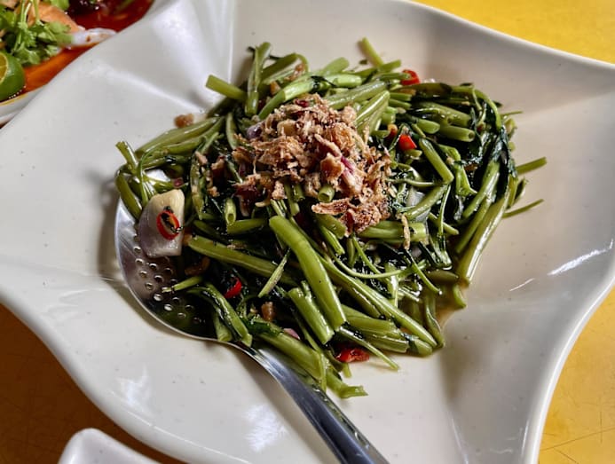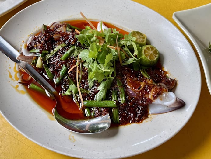 We started with the sotong sambal (RM35 or around S$11.23) – whole squid, steamed lightly to a tender, bouncy snap and dressed with a sauce of red chillies, onion and dried shrimp. The sambal added a spicy, umami kick that didn’t overpower the delicate mollusc flavour.