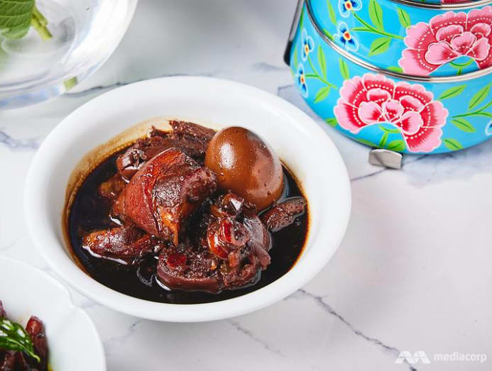 Okay, I hear you asking: Where is the zhu jiao cu or black vinegar pigs’ trotters, that classic confinement dish?