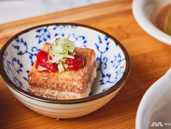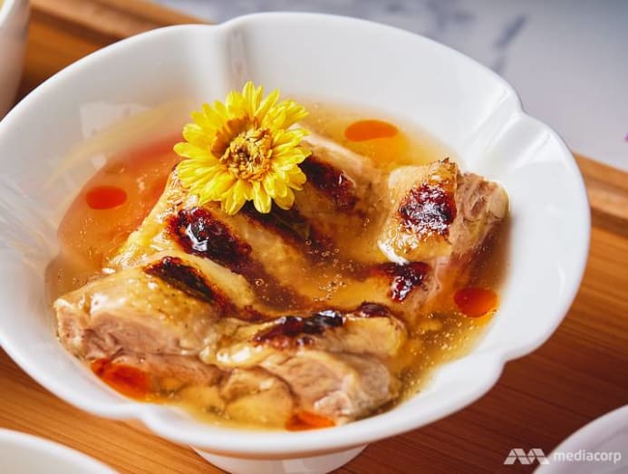 Suffice it to say that after my photographer and I tasted the tender free-range Anxin chicken thigh marinated in yellow wine, then steamed and lightly grilled, and served with a bright tomato consomme glaze as well as a sprinkle of savoury tomato oil, there followed a discussion that went on for a little too long about whether it would be worth immediately engendering children (separately, not together) for 28-day access to this chicken.