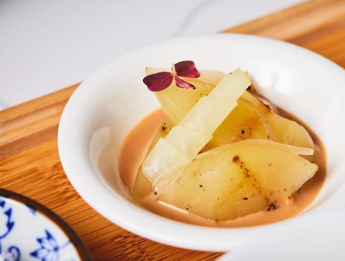 There’s a zero-waste philosophy and no artificial additives or added MSG are used – instead, the kitchen makes a range of natural infusions and syrups from scratch, such as jasmine basil oil, chrysanthemum passionfruit syrup and Hakka yellow wine.