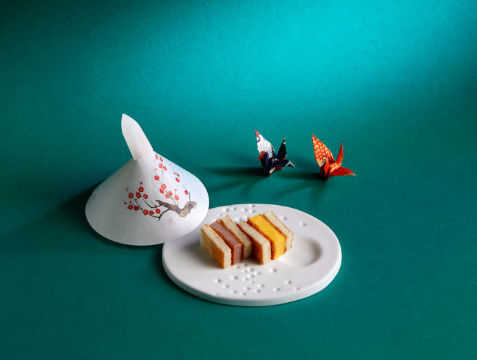 Theatrics continued as the meal went on: A few of the courses that followed, like the sando and the Kagoshima wagyu curry rice, were presented in an okamochi, a three-tiered metal box traditionally used to transport and deliver food.