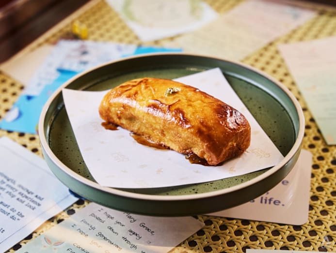 Salted egg is a logical flavour pairing for the Singapore-exclusive ensaymada (S$6.50), which is available for dine-in only. Filled with molten salted egg cream and topped with a nutty crumble, the flavour was chosen after a long R&D process in which many options like coconut and gula Melaka were trialled. “Every time my mother would come over, we’d present them to her, and she would say, ‘Not yet’. It was back to the drawing board.”