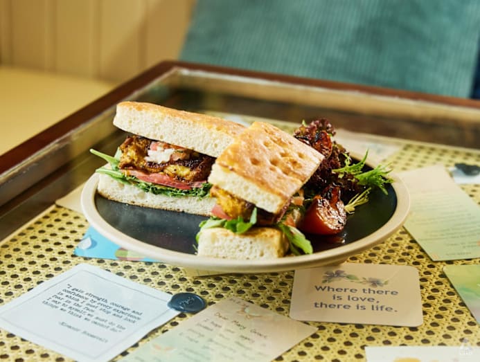 Chicken inasal is another quintessential Filipino dish, but here, it’s served as a sandwich instead of with rice, between slices of freshly baked focaccia (S$19.50). “It’s sort of a fresh twist,” Chiara said. The tender grilled chicken is cooked in a garlicky achuete-spiced marinade that packs a flavourful punch.