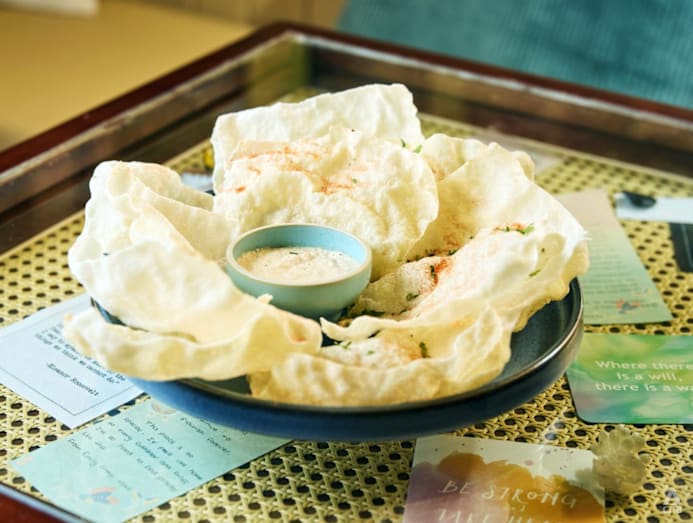 Don’t sleep on the light-as-air cassava chips with onion dip (S$12) – the dip is so addictive that customers have begged Mary Grace to sell it in jars. And, for another taste of a Mary Grace favourite, there’s a halloumi salad with calamansi vinaigrette (S$18).