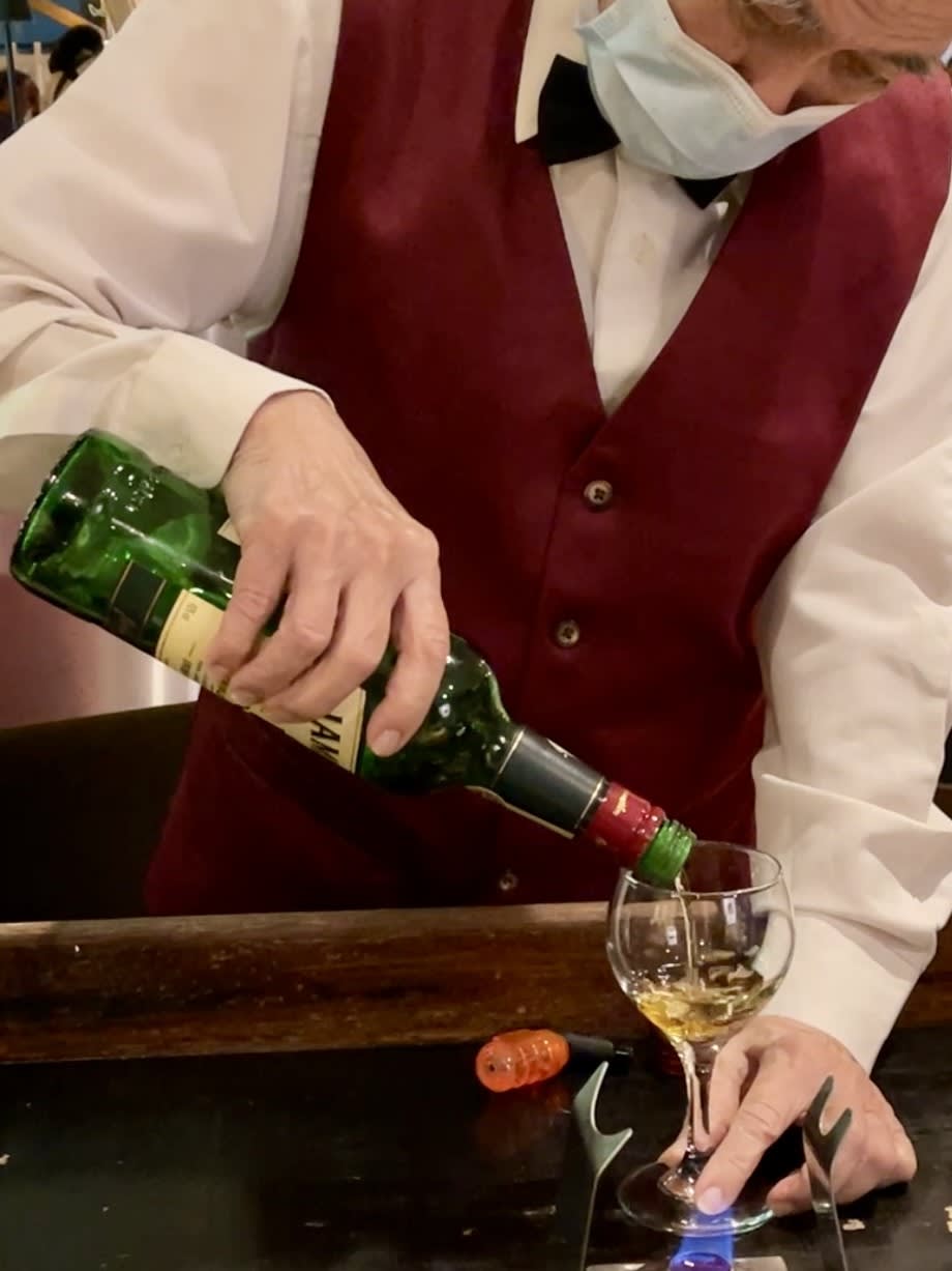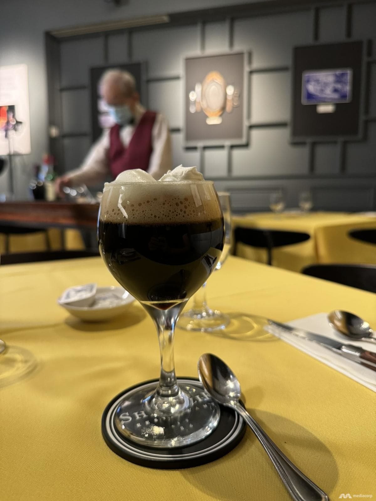 At 83, Foo Sek Chuan is one of their longest serving staff and a symbol of the restaurant’s enduring old school service. His specialties include Russian and Irish coffees (S$22 each) concocted with a side of stoic showmanship. And it would seem, asbestos hands.