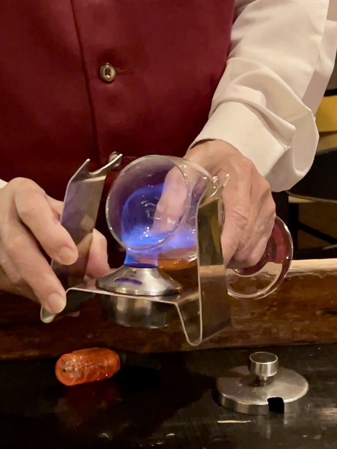 For our Irish coffee, Uncle Foo deftly turned the glass continuously over a naked flame. Firstly, to ensure the glass wouldn’t crack. Secondly, so the sugar wouldn’t burn as it dissolved in the whisky. Unflinchingly bare-handed, he then flambeed it.