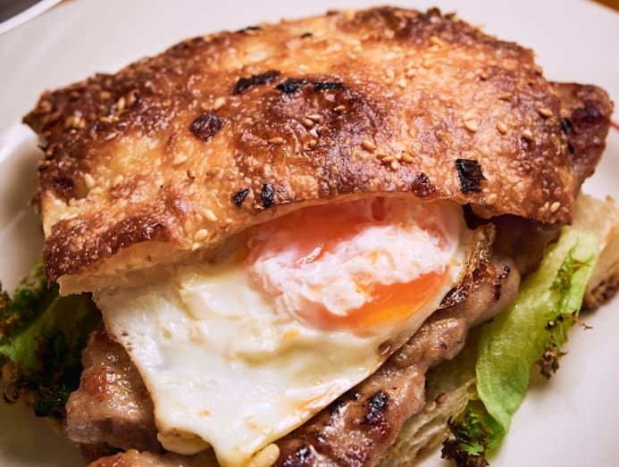 Stuffed with a thin slab of peppery pork chop (that could be juicier), fried egg and crisp lettuce, the flavours are kept light and clean, making this hearty number filling without veering too heavy.