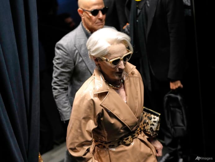 Stanley Tucci (centre, left), and Meryl Streep (centre,right), attend the Dolce & Gabbana Spring/Summer 2026 collection presented in Milan, Italy, Sep 27, 2025. (Photo: AP Photo/Luca Bruno)