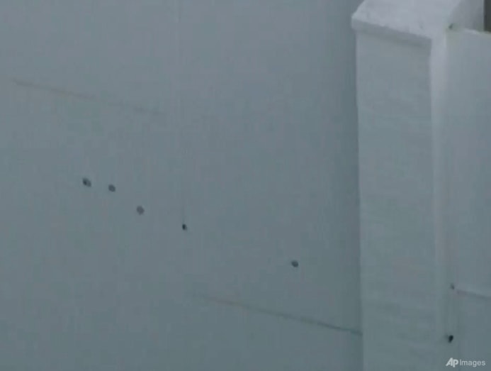 KABC-TV broadcast video that appeared to show five bullet holes in the home’s front gate. The news station obtained police dispatch audio that says 10 shots were fired.