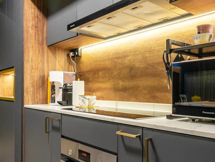 “There’s enough space for us to do prep work. I love the induction hob and the wood-textured backsplash which is actually fiberglass, as cleaning up is so much easier, which makes you want to cook a lot more,” said Candice.