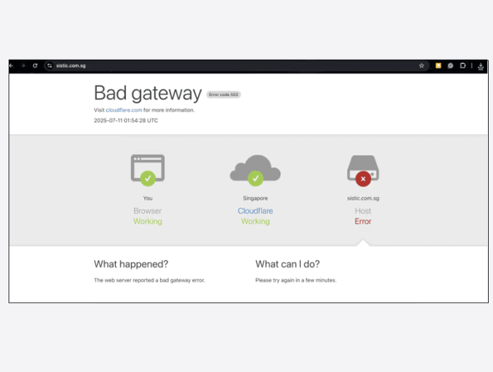 However, minutes before general sales were supposed to start, at around 9.50am, the website of ticketing platform Sistic experienced an outage, showing a "Bad Gateway" error.