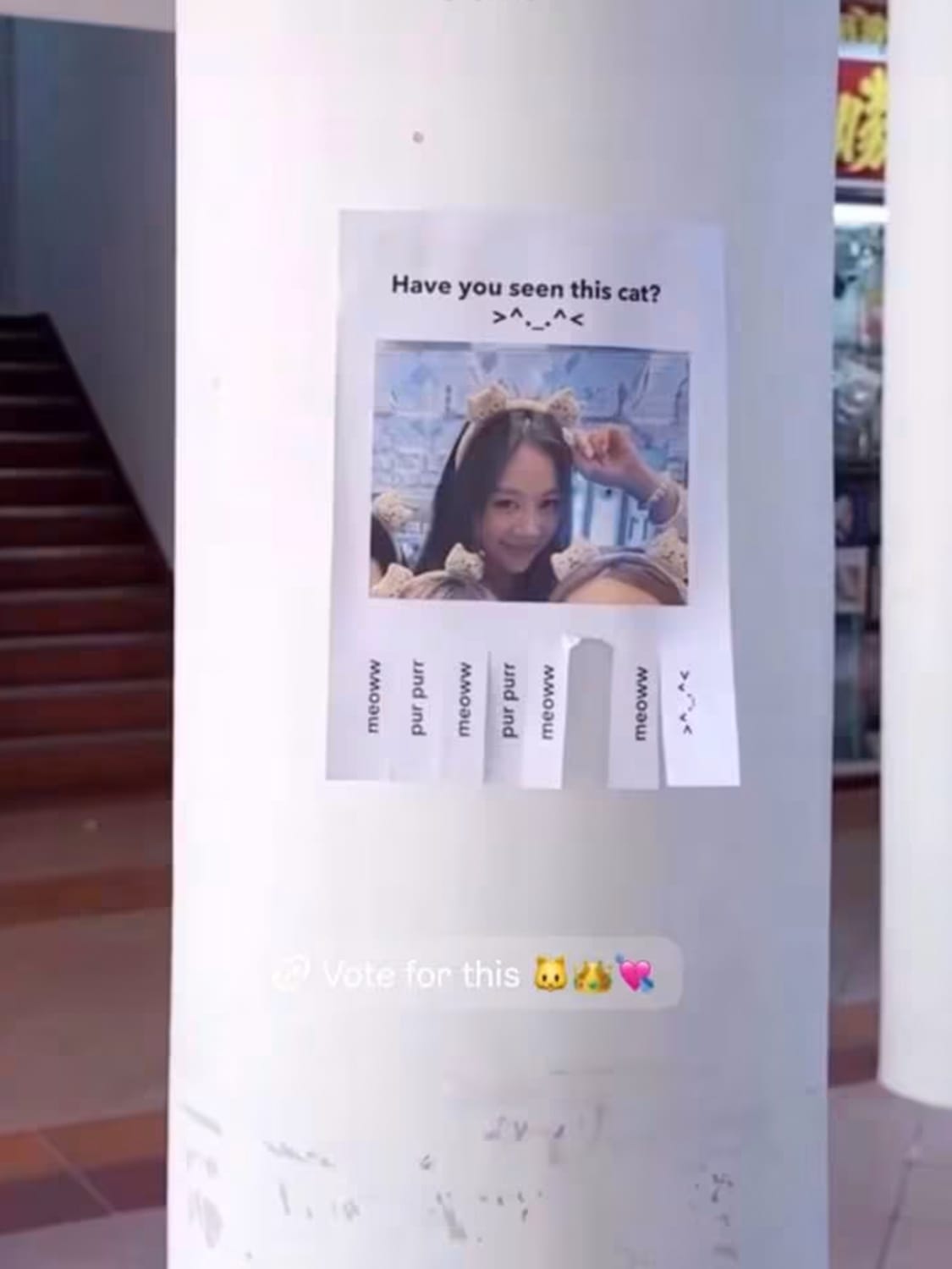 The posters included this message: "Have you voted for this cutie?" and a photo of the Emerald Hill star.