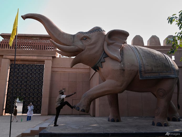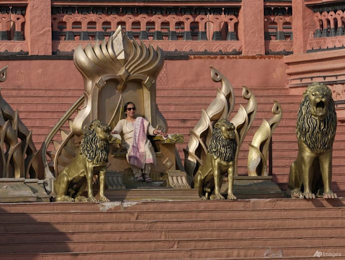 Visitors walk past the set of Bahubali in Ramoji Film City, in Hyderabad, India, Tuesday, Nov 18, 2025. (Photo: AP/Mahesh Kumar A)