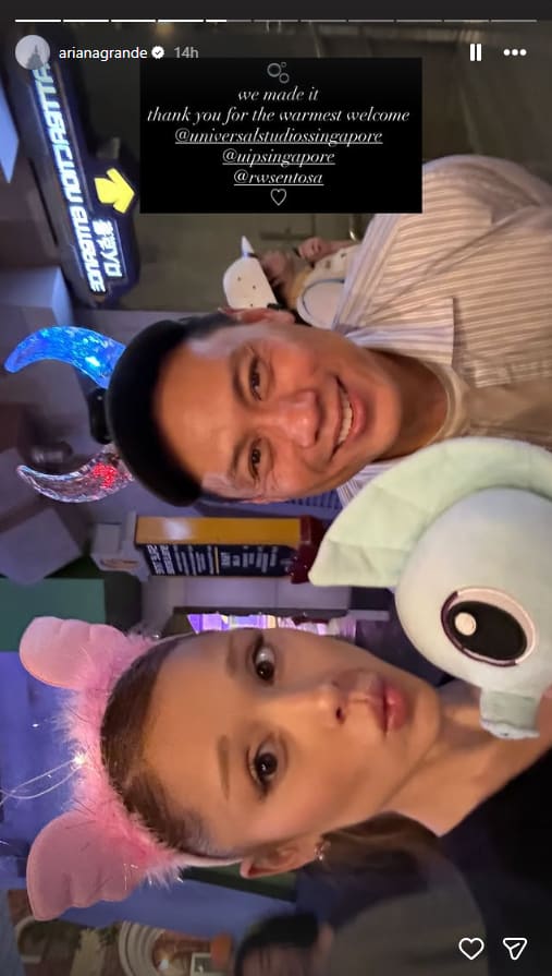 Grande also shared a snap with director Jon M Chu and thanked Resorts World Sentosa, UIP Singapore and USS for “the warmest welcome”.