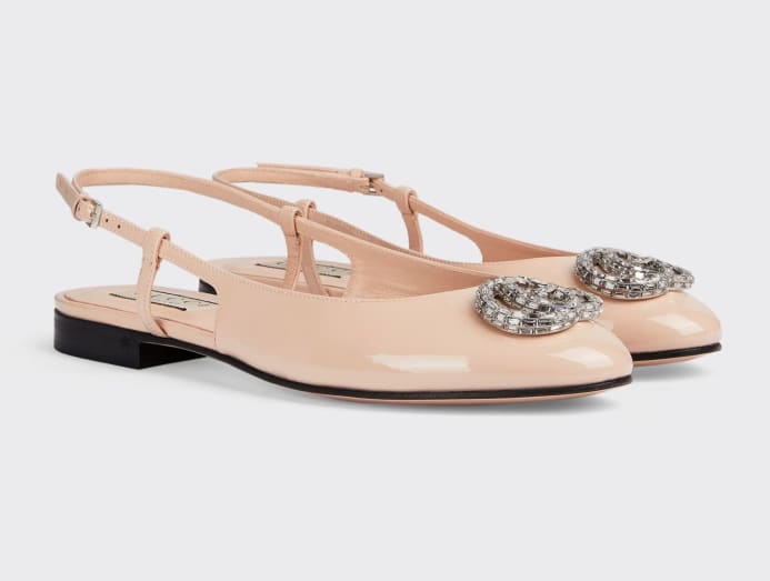 A ballerina is the picture of grace, so when looking for something ultra feminine, referencing their pointe shoes can do no wrong. Sporting the iconic flat silhouette, this pair features patent leather for a glossy elegant finish, while keeping things dainty with a pleasant blush of pink. Glamming things up is the crystal-set hardware – a sparkly accent leading back to the House with double interlocking Gs. The flat leather sole and fuss-free adjustable slingback also make this a practical, stylish way to go about your errands.