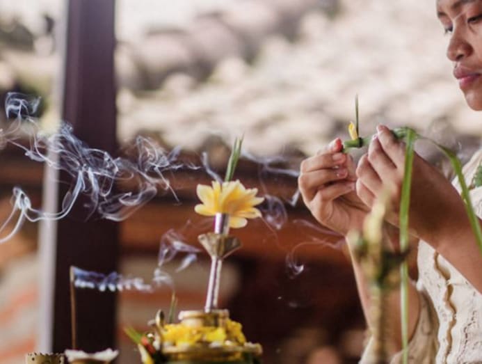 The soul-cleansing water ceremony of melukat in Bali. (Photo: Amankila Resort Bali)