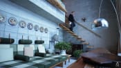 Sideboards, racks, shelves – there’s no lack of options to doll up a feature wall with. Some pieces come with wheels for easy rearrangement, while others, like the dark labyrinthic bookshelf, serve double duty as a storage solution and room divider.
