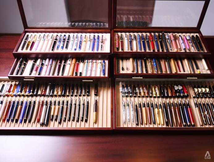 “You could fill one fountain pen with a bottle of ink many, many times, and you will generate far less waste than you would if you use a box of rollerball gel pens,” Lee told CNA Lifestyle when we visited him at home.