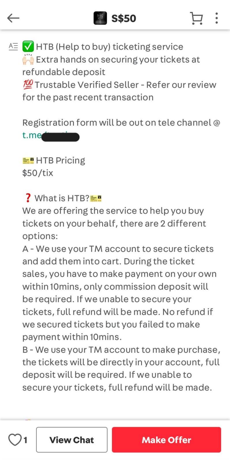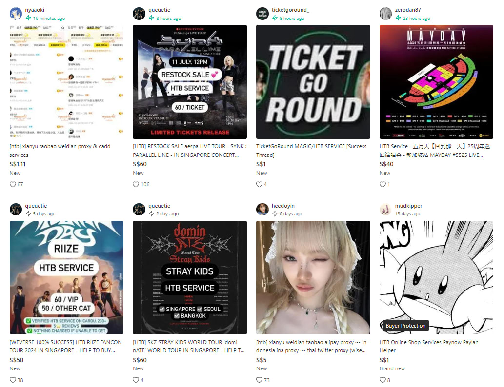 A search for “HTB” on Carousell produced 540 results as of Jul 10, with most listings offering to buy concert tickets and a few that offered services to procure items overseas on upcoming trips. As its self-explanatory name suggests, most HTB services will help you to buy something.