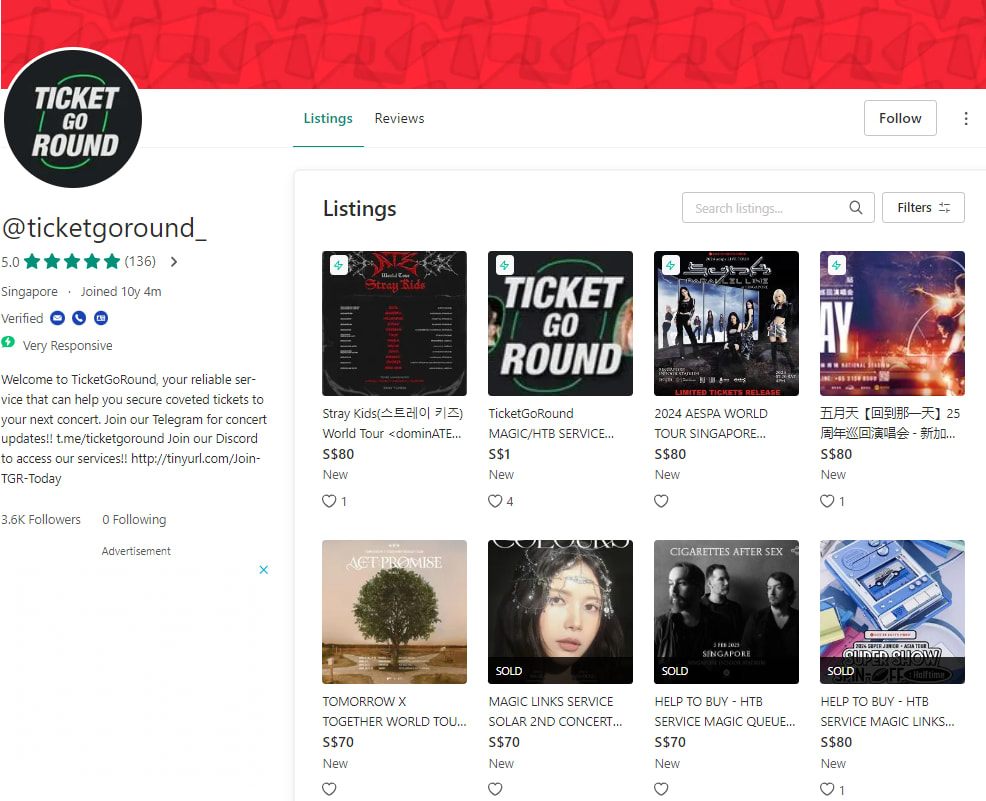 For buyers who wish to select their own tickets, TicketGoRound also offers a “magic link” option, which provides buyers a URL to “bypass queues or virtual waiting rooms, offering instant access to the ticketing site”, according to a listing on their Carousell account (ticketgoround_).