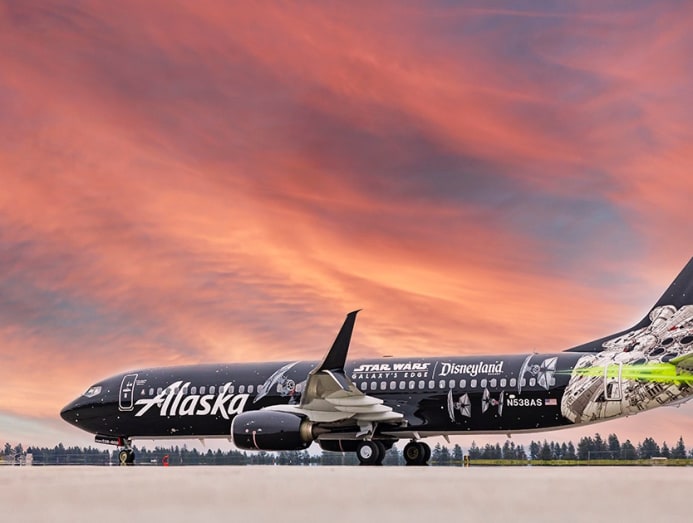The Boeing 737-890 promotes the Star Wars: Galaxy’s Edge themed areas at Disney’s parks in California and Florida, and is operating across Alaska's network.