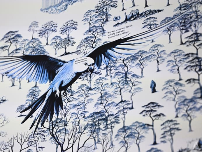 “For me, the owl is one of the strange creatures that appears at the Gillman Barracks. It's a native owl and I think you would normally associate them with more pristine habitats, but this one particularly has learned to live in a drain and feed off catfishes in a small drain,” said Zhao about the concept of the artwork.