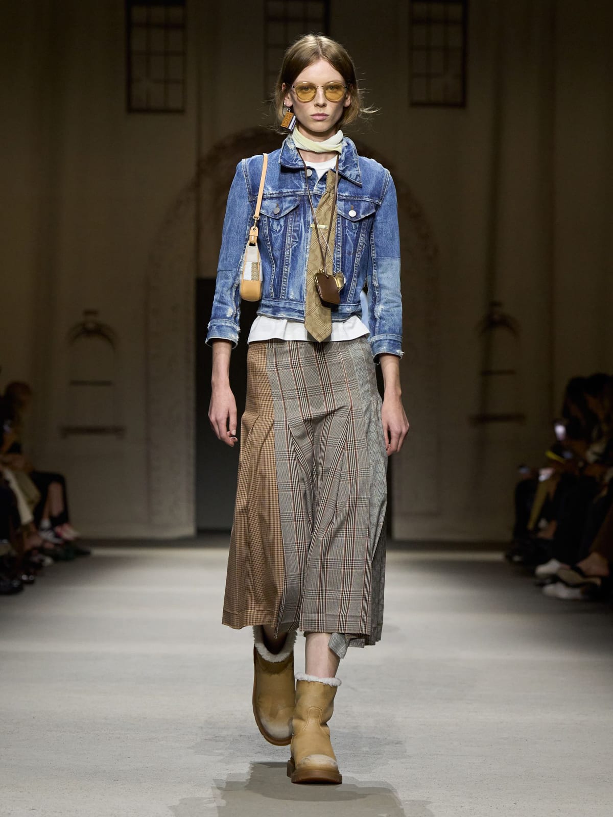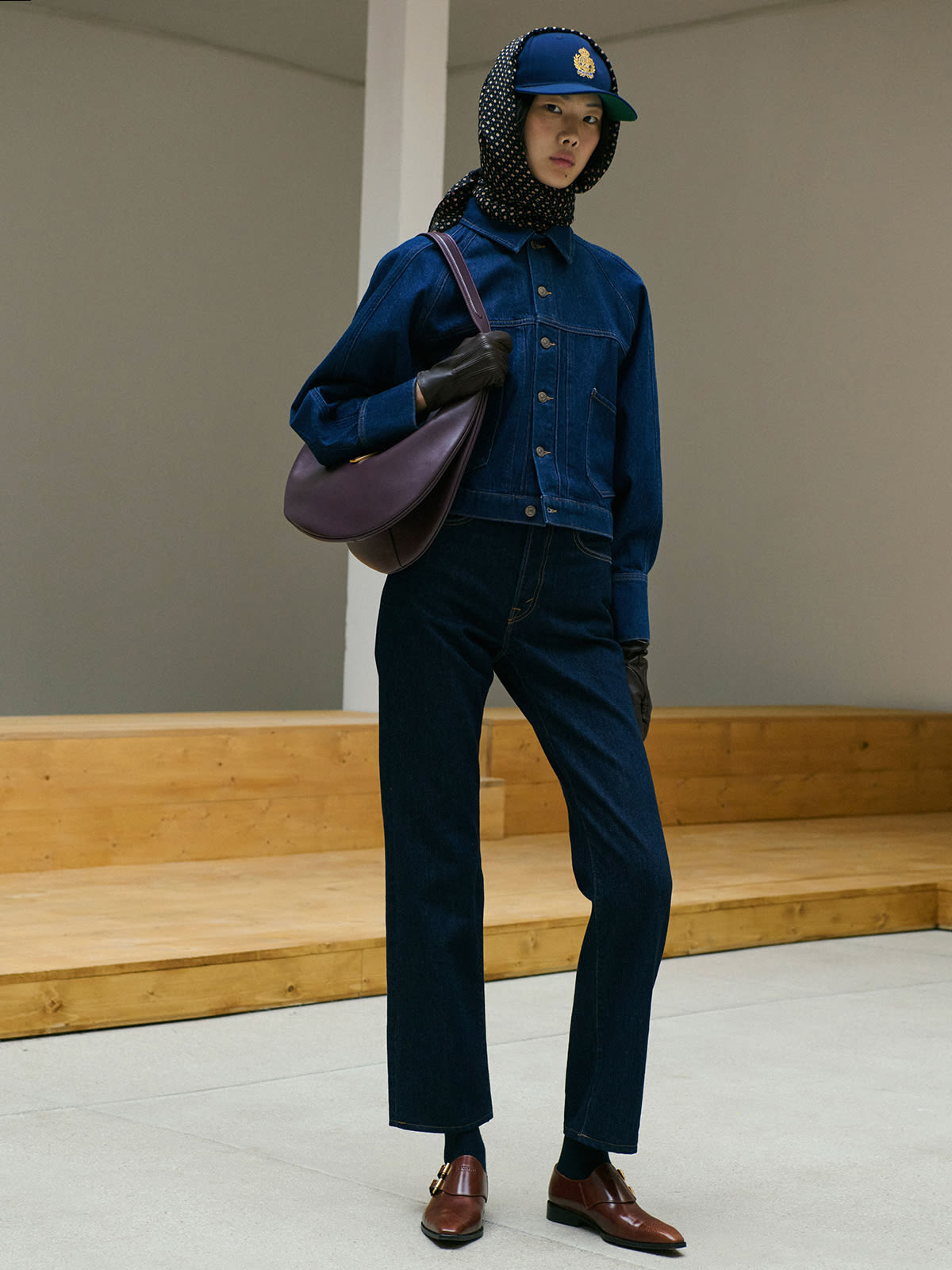 Coach’s Spring 2026 New York runway went in the opposite direction, presenting fitted, cropped trucker jackets styled with loose skirts – a pairing that nodded directly to early-2000s dressing.
