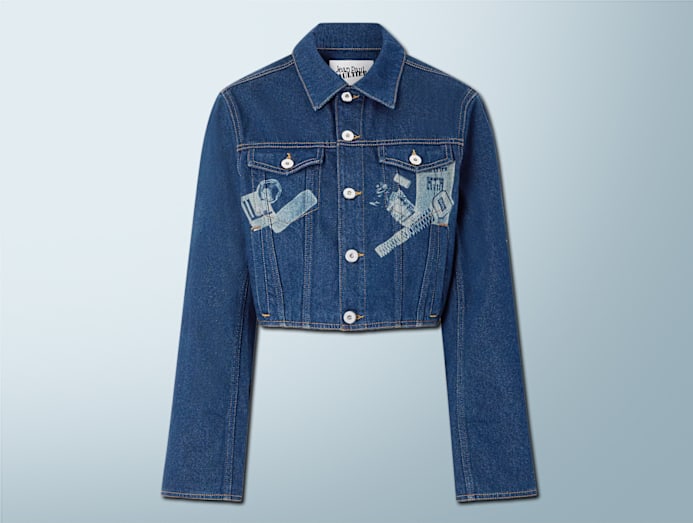 Try: Jean Paul Gaultier cropped printed denim jacket, US$710/S$913