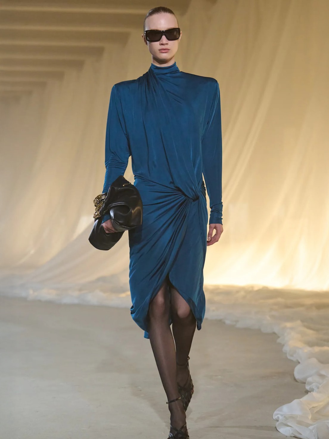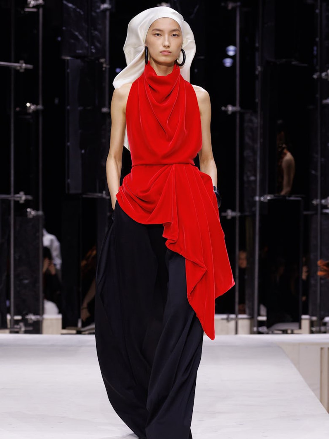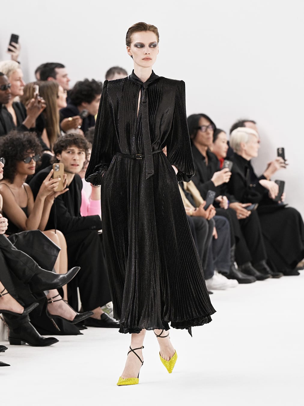 Ackermann also introduced richer textures – glossy leather coats, sheer blouses and velvet eveningwear – softening the hyper-polished sex appeal long associated with the label. The mood remains seductive, but quieter and more introspective.