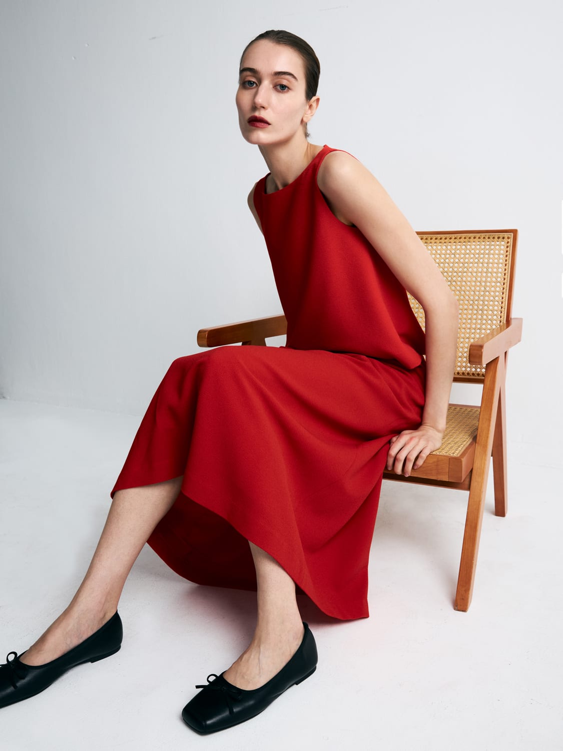 That philosophy is evident in Monoloq’s upcoming Chinese New Year collection, which offers a pared-back alternative to festive maximalism. Instead of overt symbolism, the focus is on form, texture and craft: Layered viscose-crepe separates, a jacquard mandarin-collar shift in rich crimson, and a modern cheongsam-inspired silhouette rendered in side-gathered knit jersey. These are pieces designed to outlast the season.